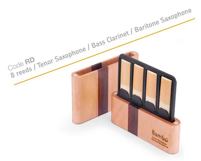 Porte-anches de haute qualité pouvant contenir 8 anches de clarinette basse, saxophone ténor ou baryton. Couleur rouge-brun, intérieur synthétique, extérieur bois. 100% fait main, le bois et la couleur peuvent donc varier.